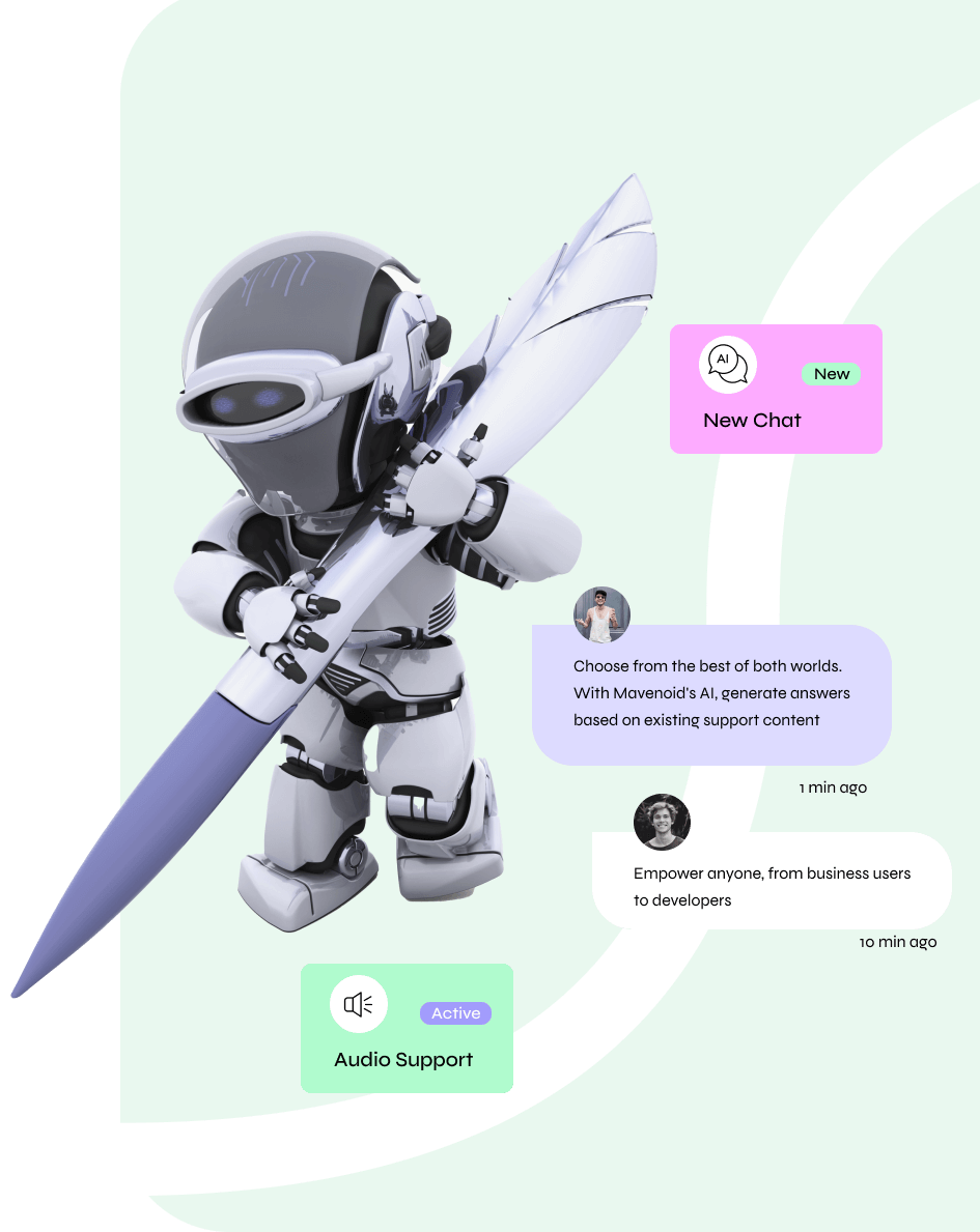 Choose from the best of both worlds. With Mavenoid's AI, generate answers based on existing support content